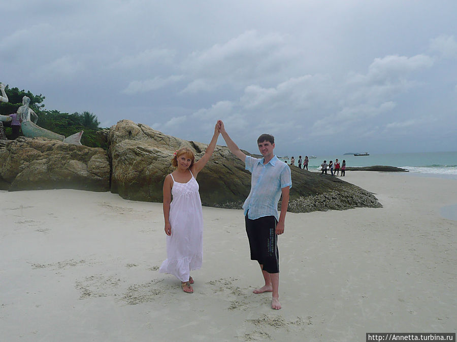 Как я уже говорила, на реку Квай и на Ко Самет мы ездили с "Кокосами". Что первый, что второй раз мы остались очень довольны этими ребятами. Очень много и интересно рассказывают, главное, внимательно их слушать, потому что на обратном пути они устраивают блиц-опрос и победившему дарят подарок. Моему сыну подарили футболку, а когда возвращались с Ко Самета всем вручили по ананасу. Мелочь, а приятно. По пути на Ко Самет нас завозили на рыбную ферму, где в отдельных загончиках плавают разные виды рыб, а так же морская черепаха и леопардовые акулы, а на обратном пути на местный фруктовый рынок. Цены на этом рынке приятно удивили. Пляж, который арендуют "Кокосы" на Ко Самете находится возле статуи Принца и Русалки. Здесь нет толп народа, а места много. Белый как мука песок, бирюзовая вода... Сплошное наслажденье!