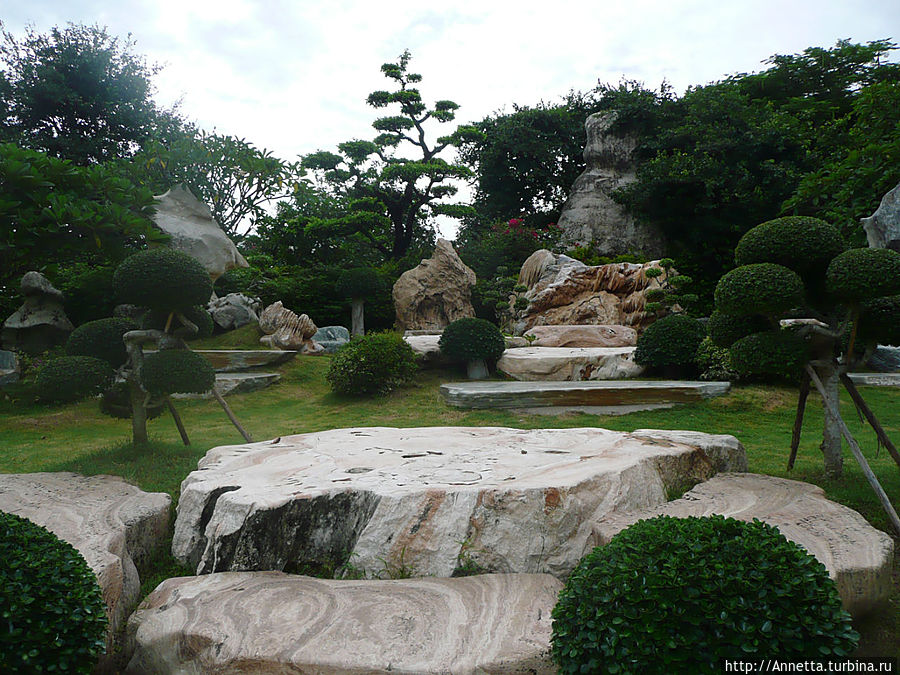 А вот крокодиловое шоу и сад многомиллионных камней понравились очень. Гуляли мы по саду сами, исходили его и вдоль,и поперек, и по диагоналям, заглянули во все уголки, благо, времени у нас было предостаточно. Сад очень красивый, интересные композиции из камней, мини зоопарк. Здесь мы первый раз " лично" пообщались со слонами. И сфотографировались. Я решила сфотографироваться с двумя, сидя на их сцепленных хоботах, однако, когда я села на это импровизированное сиденье, то почувствовала, что один из хоботов медленно из-под меня уползает!!! Слоник, почему-то не захотел меня держать.