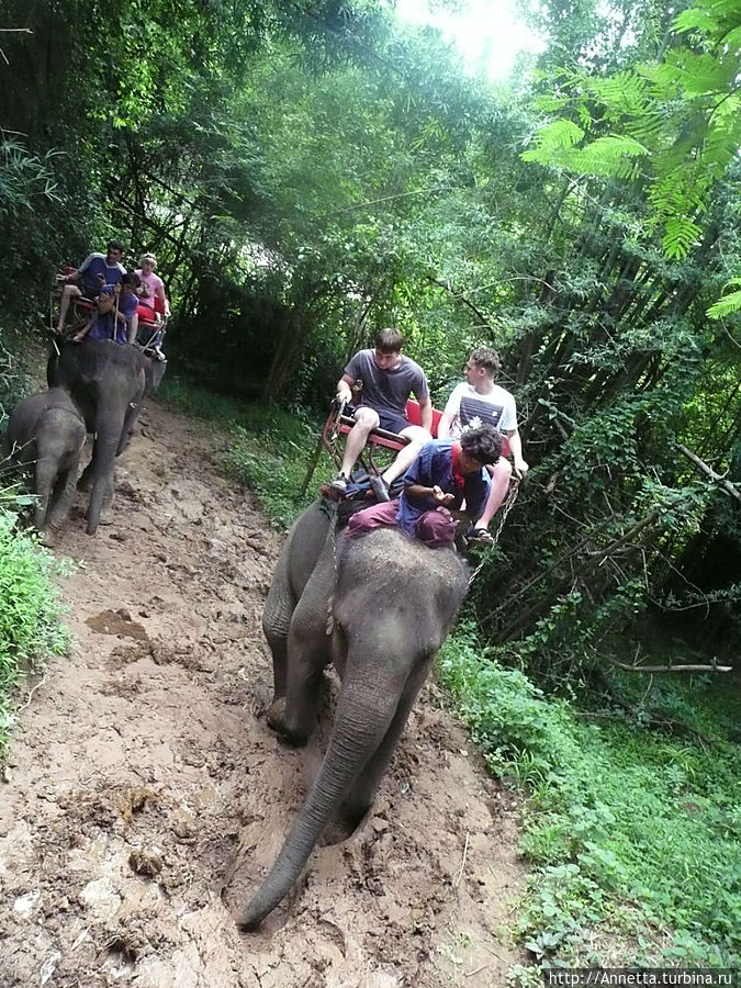 Затем мы поехали на водопад Эрован, побултыхались в воде с рыбами, которые только и делали, что хватали за ноги и за руки. Водопад имеет 6 уровней. Мы добрались до четвертого. Карабкались по скользкой грязи (дело было после дождя), рискуя упасть. В конце-концов нам это надоело, и на оставшиеся 2 уровня мы решили не карабкаться. Сплав по реке слегка разочаровал. Я его как-то по-другому представляла. Просто я была на настоящих сплавах, где пороги, перекаты, а тут просто бухнулся в воду в жилете и поплыл по течению из пункта А в пункт В. Кто не желает в воду — пожалуйста на плоту. Зато прогулка на слонах да после дождя, да по скользкой грязи впечатлила всех. Нам достался самый веселый погонщик, он нас смешил и веселил, пел песни про мороз и слона. И слоник у нас был самый быстрый. Вышли мы предпоследними, а пришли первыми. Он всех обогнал. В общем заряд позитива нами был получен огромный. Что касается экскурсий от "Пегаса", то больше всего понравился Нонг Нуч с вечерней программой. Очень красивый и интересный парк. И гид Артур выкладывался по полной. Молодец! Очень хорошо всех организовывал и интересно рассказывал. Вечерняя программа отличается от дневной наличием ужина с мини-шоу и запуском в ночное небо бумажных фонариков. Наш фонарик был запущен неудачно. Мы отпустили его слишком рано, и поэтому он не набрал нужной высоты и в полете зацепился за пальму. Пальма начала гореть. Мы бросились спасать и пальму, и фонарик. Нам на помощь подбежал тайский мальчишка лет 12-ти, он где-то нашел проволоку , видимо от такого же неудачно запущенного фонарика и мы общими усилиями спасли обоих . Еще немного потелепавшись над дорогой (машинам, ехавшим в этот момент пришлось остановиться), он все-таки взмыл в ночное небо. Ну, что ж, возможно, наши желания все-таки сбудутся, не смотря на преграды.