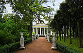 Но как может быть садик императрицы и без скульптур — проходим по центральной аллее и любумся павильоном Трех граций. В этом павильоне Мария Федоровна встречала своего сына Александра I после побед над Наполеоном в 1814 году.