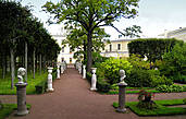 И наконец, третья часть — "Французский сад" - имеющий регулярную планировку, засажен невысокими деревьями и кустарниками.