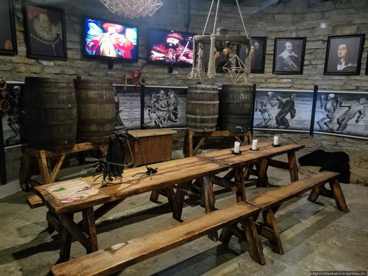 Начинается все с подвала, с доисторический времен. Там рассказывают кто жил в этих местах, когда времени еще не было. Потом идет орденский период с копьями, щитами, средневековыми нравами эпохи раннего христианства.
