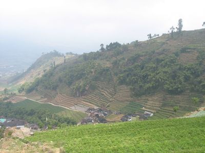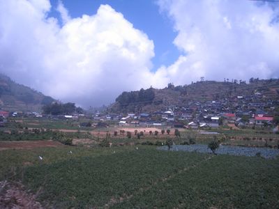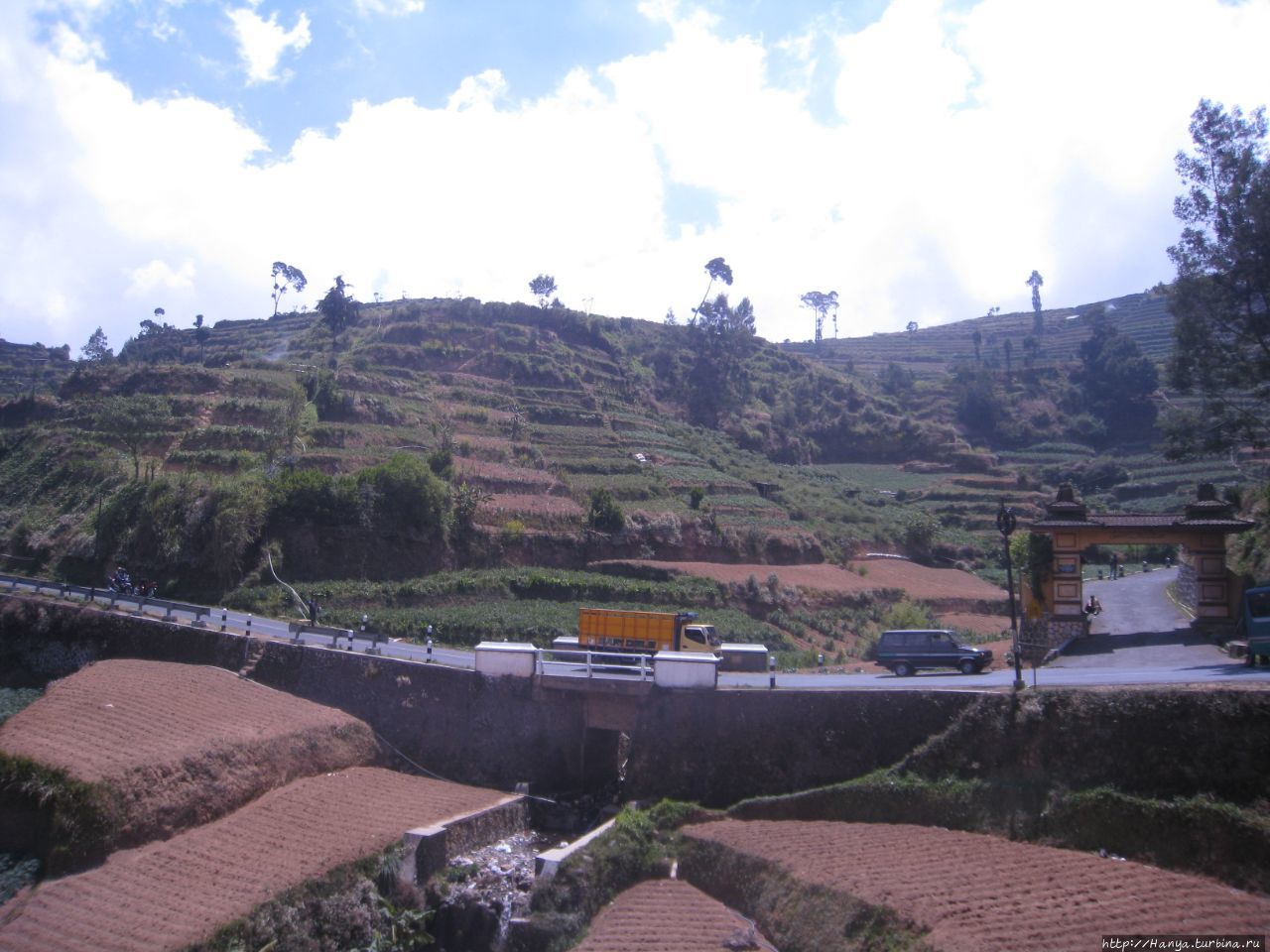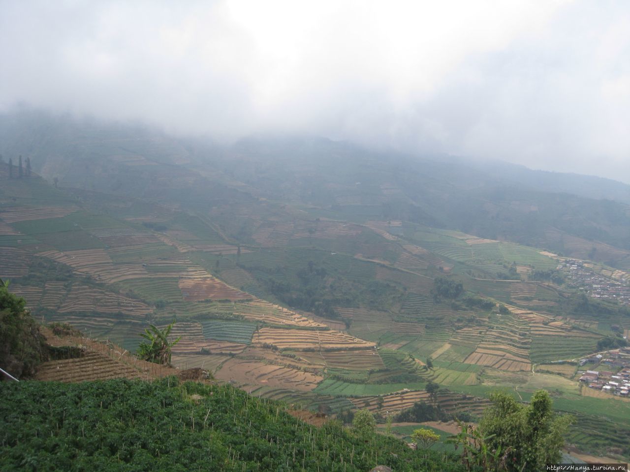 Забегая вперед, скажу, что, проехав через половину острова Ява, мы поняли, что она является преимущественно аграрным островом. Странно было бы предполагать другое в месте, где многочисленные вулканы постарались щедро удобрить почву. С подъемомо вверх, меняется климатические особенности и сельское хозяйство переходит от риса до чайно-кофейных плантаций. И уже совсем наверху мы видим так знакомые нам по прошлому поля с картошкой, морковкой и капустой.