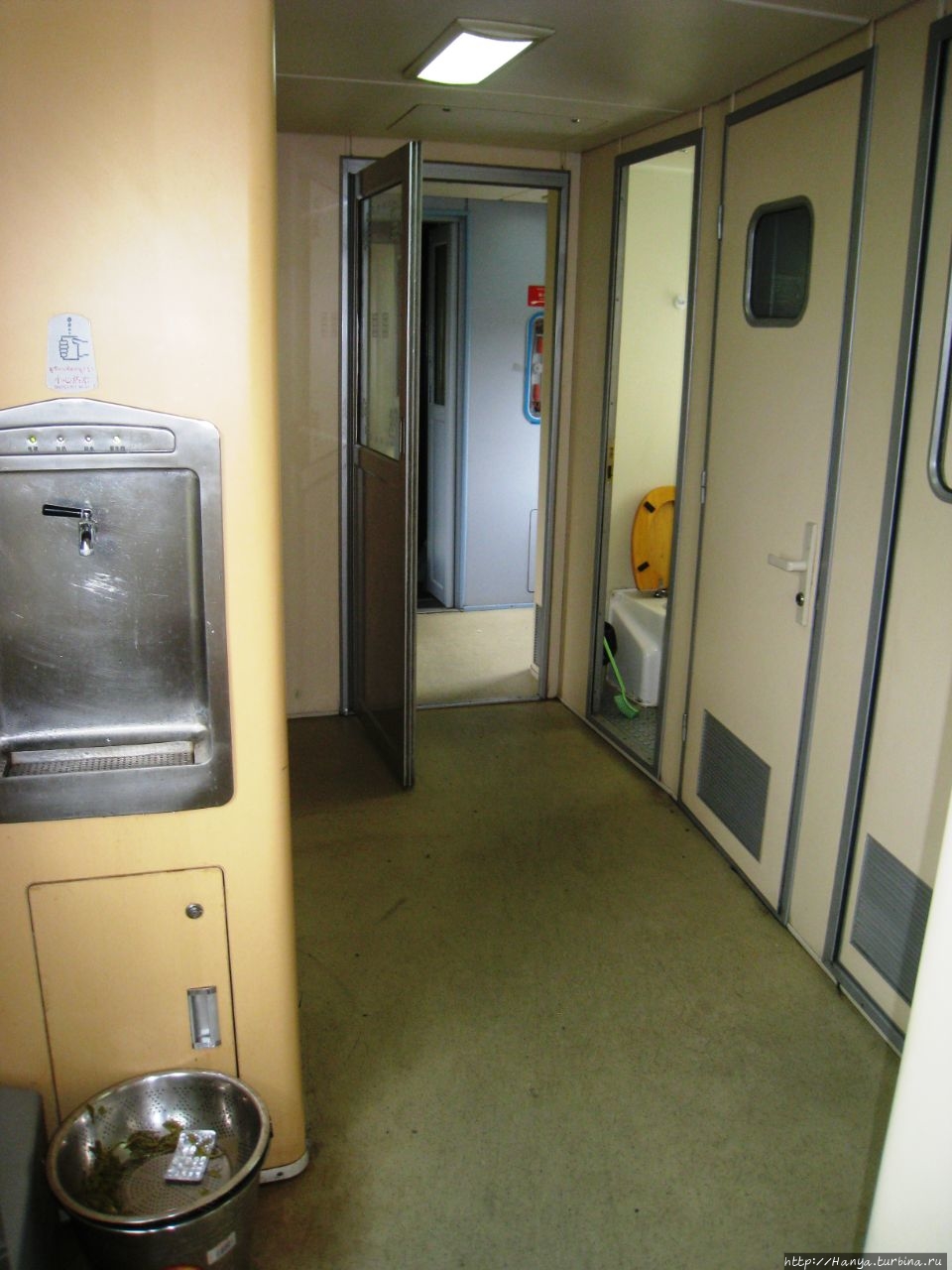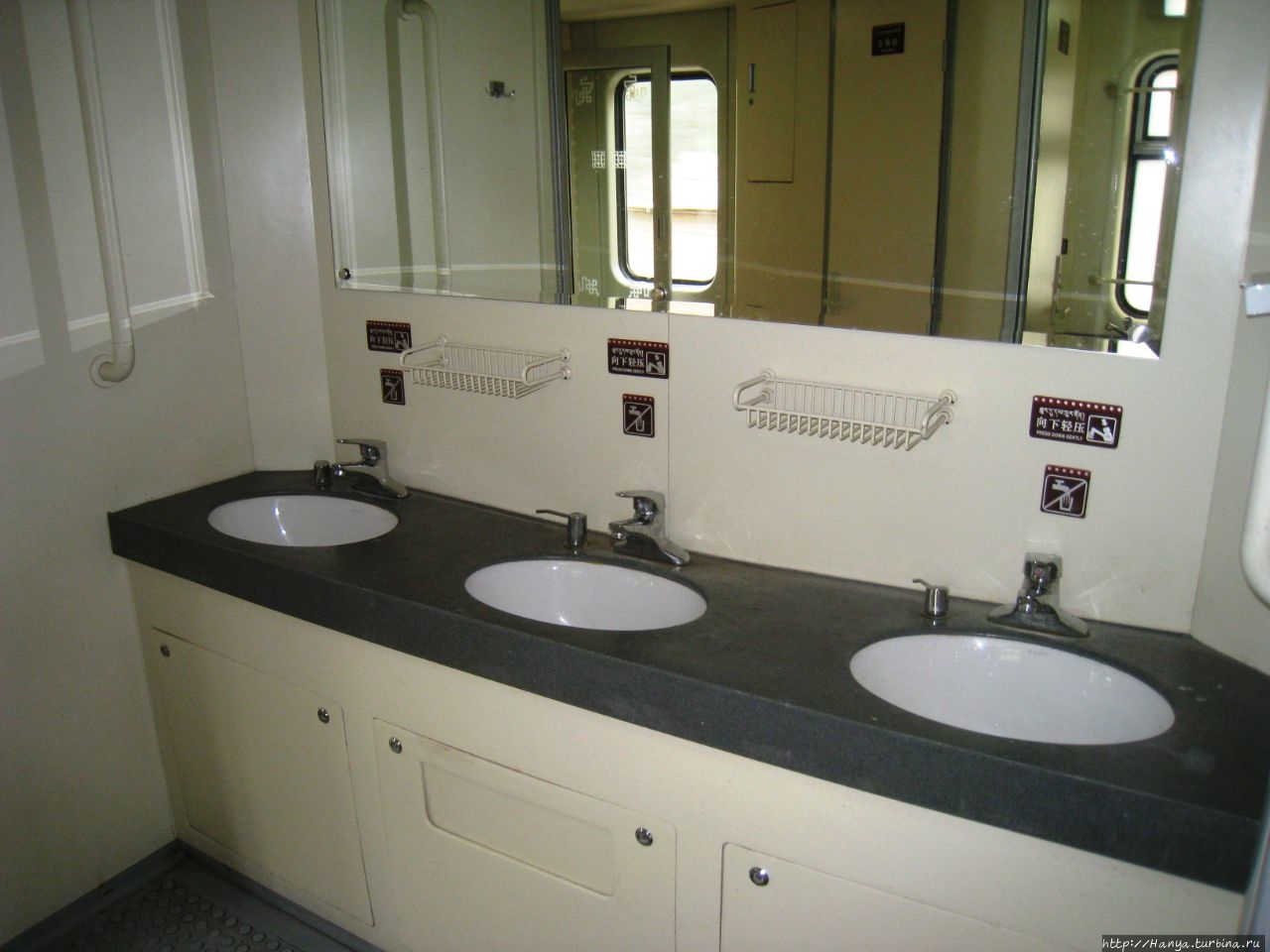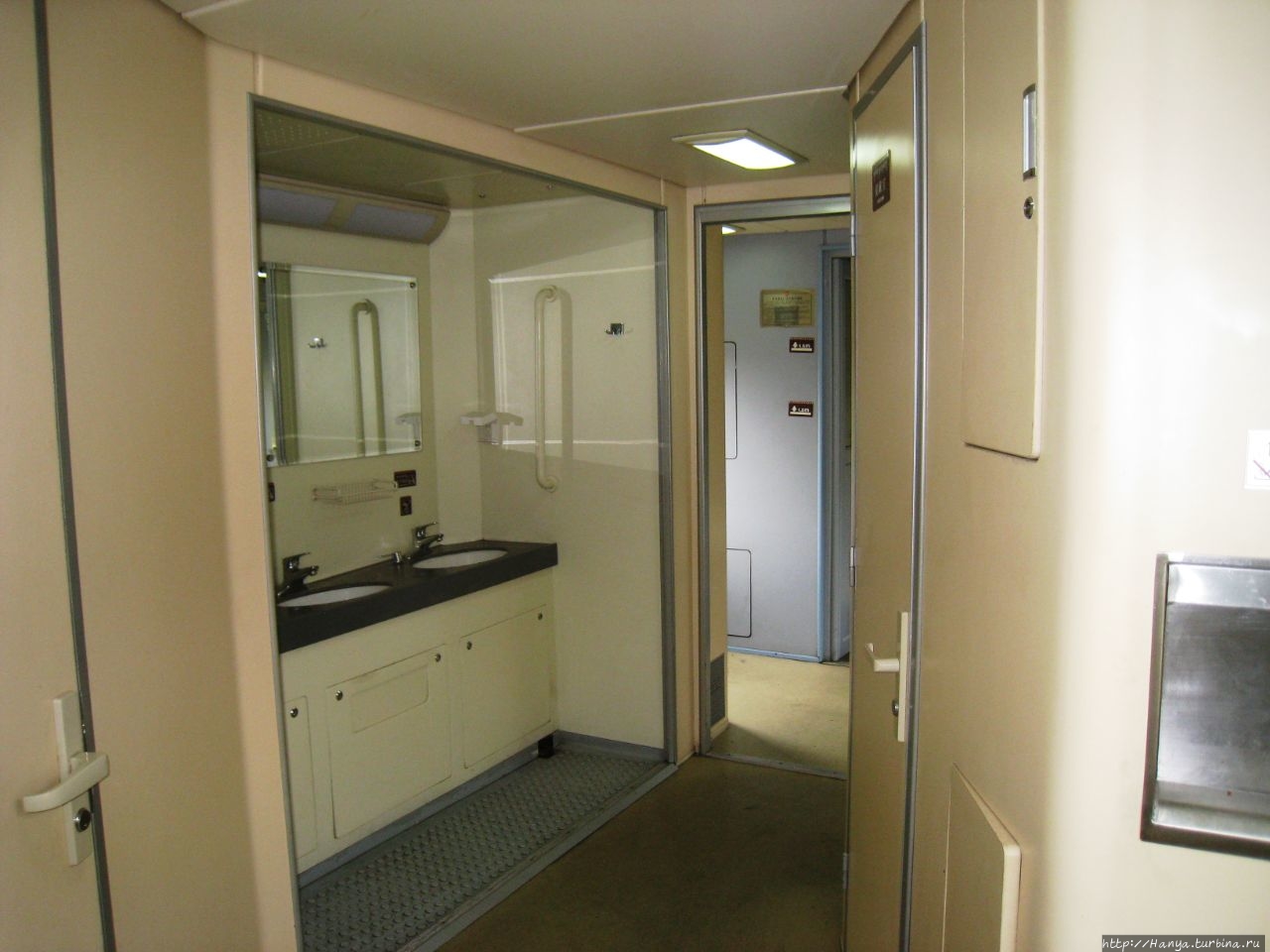 Формальности соблюдены, и мы можем изучать вагон, осваивая территорию суточного проезда. Здесь новое открытие: в отличие от наших поездов купейный вагон имеет не наших 9 стандартных купе, а 8. В высвободившемся пространстве обустроены три раковины, что очень удобно и решает вопрос вечно занятого туалета в пути.