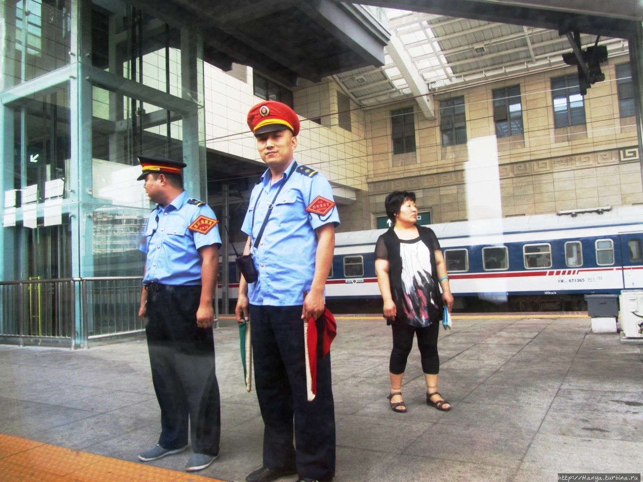 Пекинский вокзал расположен в центре столицы, и огромная привокзальная площадь встретила нас не просто обычной вокзальной сутолокой, а толпой народа, сквозь которую мы протискивались, следя за передвижениями гида. Он велел нам отдать ему паспорта и отошел с ними к небольшому павильону, расположенному перед собственно зданием вокзала. В кассовом окне он поставил печати на оригиналы билетов и вернул нам их вместе с нашими паспортами. Он велел нам крепко держать их в руках и не терять. Далее в толпе таких же пассажиров мы прошли через вертушку, предъявив паспорт с билетом контролеру.