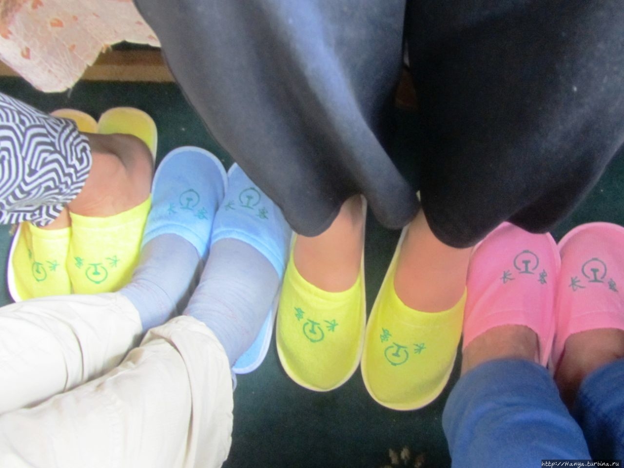 Придя в себя после такого испытания, мы осматриваем купе и обнаруживаем большой термос и разноцветные разовые тапки.