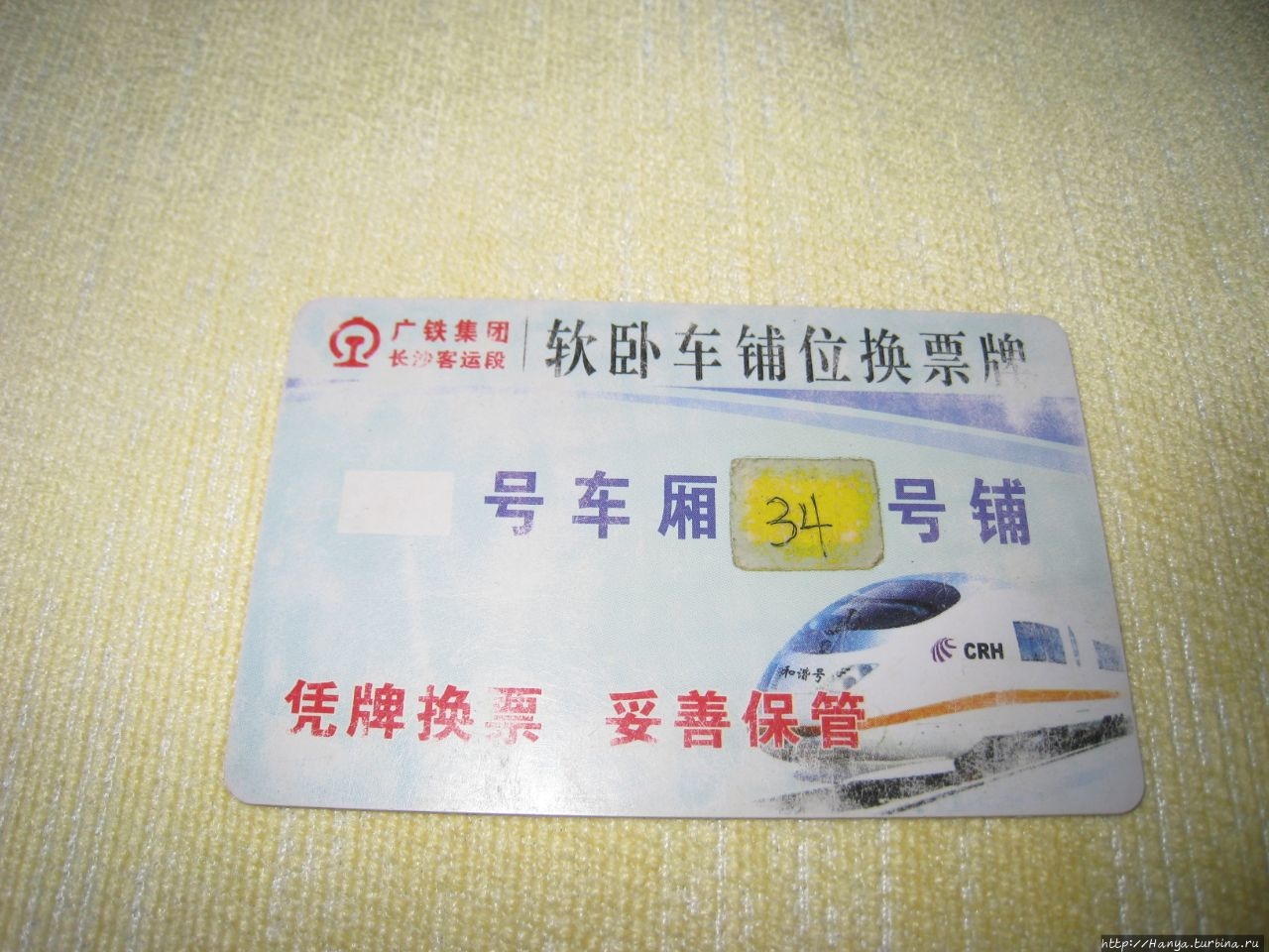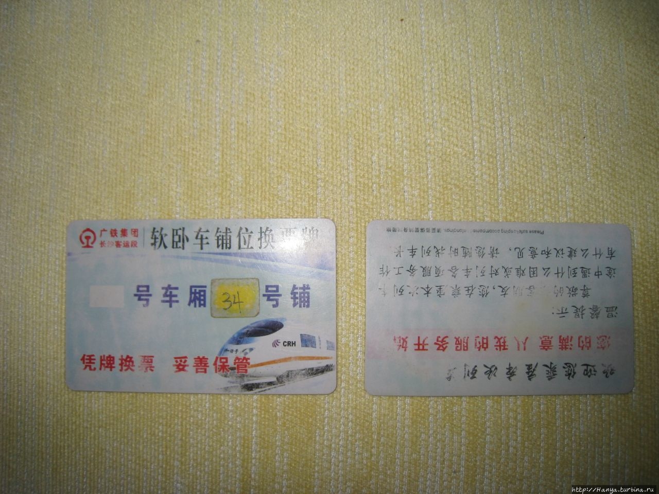 Еще до отъезда (дома) нам выслали в электронном виде проездные документы: небольшой (размером с сигаретную пачку) билет розового цвета, из которого можно было (большинство текста набрано по-китайски) понять только дату, время, номер поезда, вагона, места, станцию отправления и прибытия и его стоимость. Идентифицировать свой билет можно было по указанному внизу слева номеру паспорта. Сами билеты нам должны были выдать по приезду, но об этом позднее.