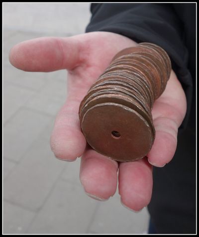 Я читала, что монеты продают рядом с мостиком. Там действительно стоят два киоска, но оба были закрыты и не подавали никаких признаков жизни. Мы потоптались у моста. Покидать монетки в колокол хотелось, но где их взять? Муж даже почти серьёзно предложил спуститься по металлической лесенке под мост и собрать монеты там. Потом кто-то всё-таки махнул нам в сторону одного из киосков. Как только мы подошли, шторка отползла, окошко открылось и нам за 10 юаней выдал талон, который в соседнем киоске нужно было обменять на монетки. Сложная система в общем. :). Зато потом мы долго смеялись над тем, как по собственной глупости чуть-чуть не «кинули» даосский монастырь на 10 юаней. А сама затея с монетами и колоколом очень азартная.