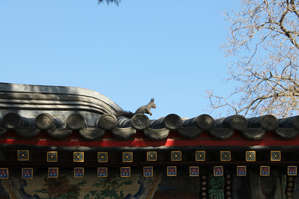 От озера начинается подъем на холм Долголетия. Отсюда он более прост и менее суров. Архитектура очень похожа на то, что уже видели . Конусообразные крыши с мифическими животными на коньках. При подъеме некоторые коньки находятся так близко, что удается сделать крупным планом строй этих животных.