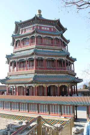 Отсюда уже рукой подать до символа Летнего Дворца — Башни Воскуриваний в честь Будды. Восьмиугольная башня в четыре этажа, стоящая на 20 метровом каменном фундаменте притягивает к себе внимание с любой точки Дворца. Внутри башни находится статуя Будда, отлитая в 1574 году. С террасы башни делаем еще несколько панорамных снимков и спускаемся вниз к озеру.