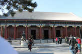 Перед тем как покинуть Дворец остановимся у Зала Доброты и Долголетия. Это место , где император иногда занимался своими делами. Сейчас в зале можно увидеть трон, панно, декоративное опахало, сделанное из перьев павлина, фимиамы и фонари, сделанные в виде журавлей — все стоит на тех местах, где они были раньше.