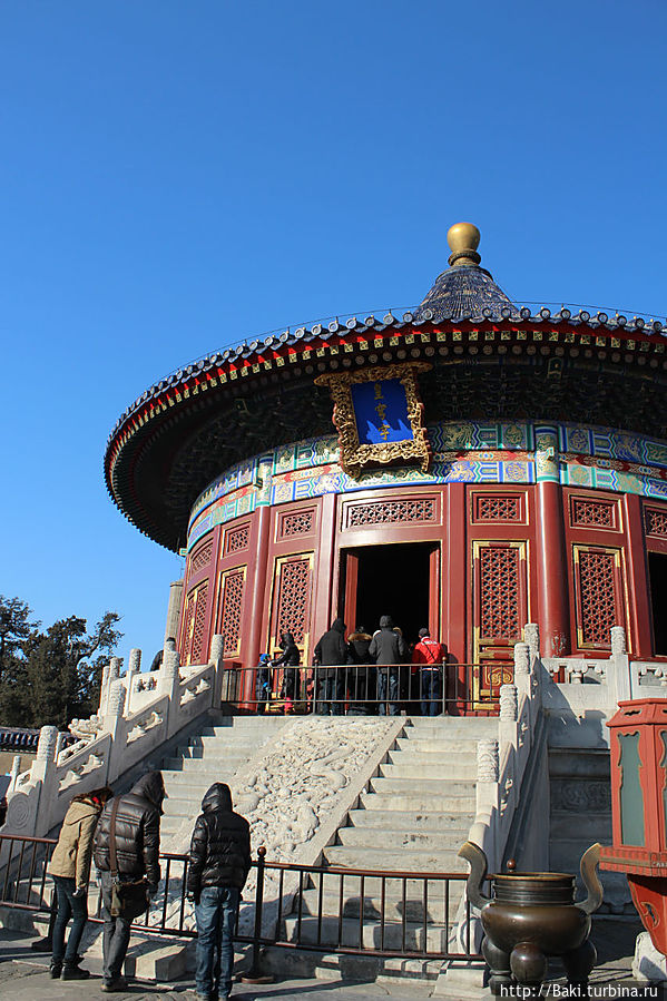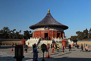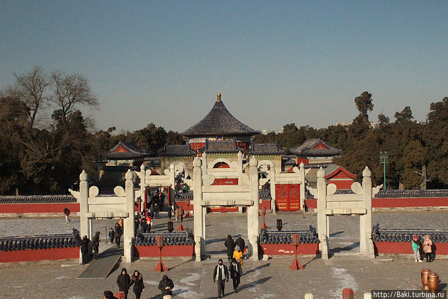 Переведя дух, отдохнув, двинулись далее, а точнее в Храм Неба. Его строение началось практически одновременно с Запретным городом. Раз в год император прибывал на территорию комплекса принести дары Небу и Земли (первоначально). Квадратная часть комплекса это Земля, а круглая — Небо.