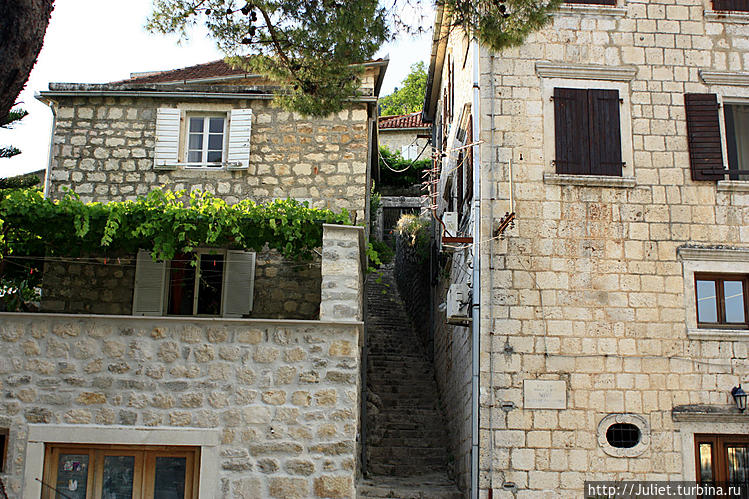 Город имеет уникальное расположение: с одной стороны его омывают воды Адриатики, а с другой сторожат скалы. Поэтому многие годы он просто не растет. Когда мы гуляли по улочкам Пераста, меня не покидала мысль, что мы словно случайно оказались в сказочной шкатулке из песочно-мышиного камня. Еще мгновение, и музыка остановится, щелчок, и крышка закроется, а мы останемся в неведомом лабиринте узких, витиеватых улочек, бесчисленного количества ступенек, жарких каменных блоков. Пройдет несколько минут, и от стен послышатся звуки – это голоса истории, событий, людей, которые бережливо и гостеприимно встречал, опекал, защищал и хранил город.