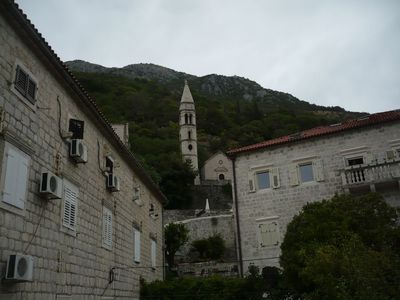 С колокольни открываются виды на Которскую бухту и окрестности города.