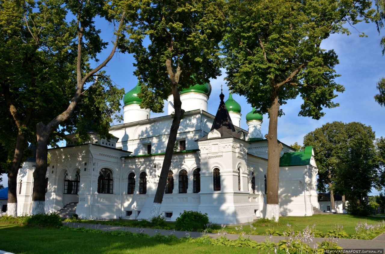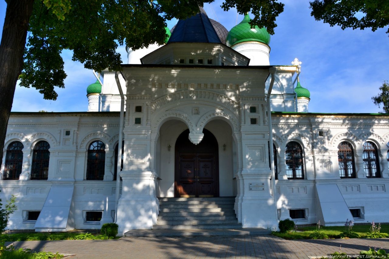 Благодарный Иван Грозный повелел заменить в монастыре обветшавшую деревянную церковь пятиглавым каменным собором. Сегодня он – самое старое из сохранившихся монастырских зданий. Храм имеет четыре мощных столпа и пять луковичных глав.