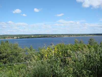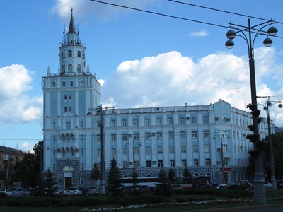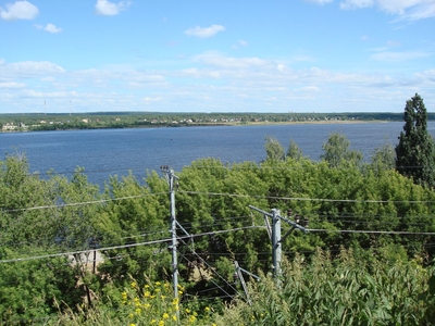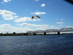 Пока мы прикасались к счастью, к пристани неподалеку причалил прогулочный кораблик, чтобы прокатить по Каме первых на сегодня пассажиров. Прогулка была приятной и необременительной. Небо дарило разнообразие облаков , берега то приближались , то отдалялись , радуя зеленью. Архитектурных памятников с реки было видно не много, расскажу о тех, что остались в памяти и на снимках. Конечно, это самое высокое дореволюционное здание Перми — Спасо-Преображенский собор.
