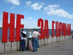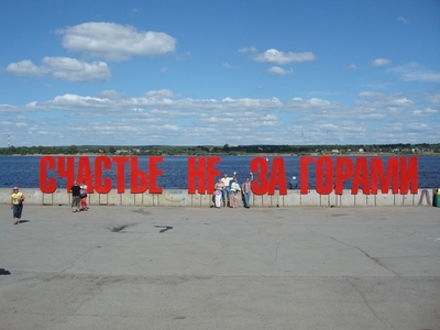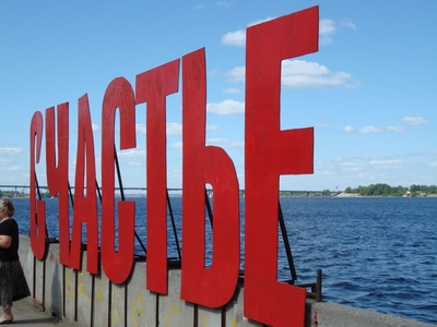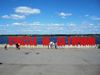 Очень быстро мы оказались на набережной. А здесь сразу привлекает внимание жизнеутверждающая надпись: