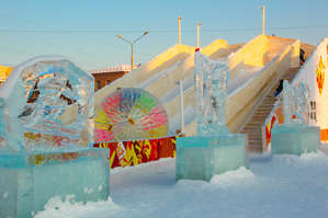 Насмотревшись на искусно созданных волшебниками-мастерами ледяные скульптуры, самое время заразиться азартом и начать покорять свои вершины, тем более соответствующие атрибуты в виде ледянок представлены тут же в большом разнообразии. Одна олимпийская горка только чего стоит, ведь пока на нее заберешься – всё равно что Олимп возьмешь