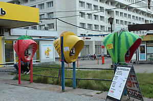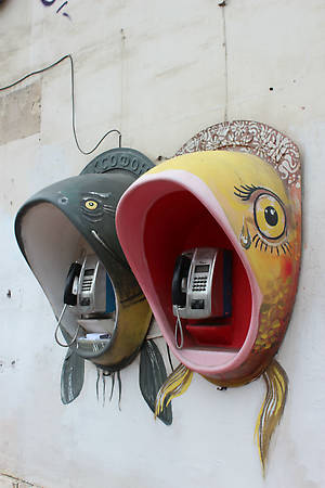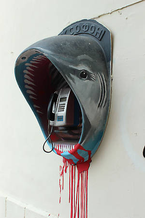 Особенно оригинально выглядели разрисованные в виде фруктов или рыб таксофоны. Многие жители, проходя мимо, улыбаются. Значит, свою функцию уличное искусство выполняет: поднимает настроение =)