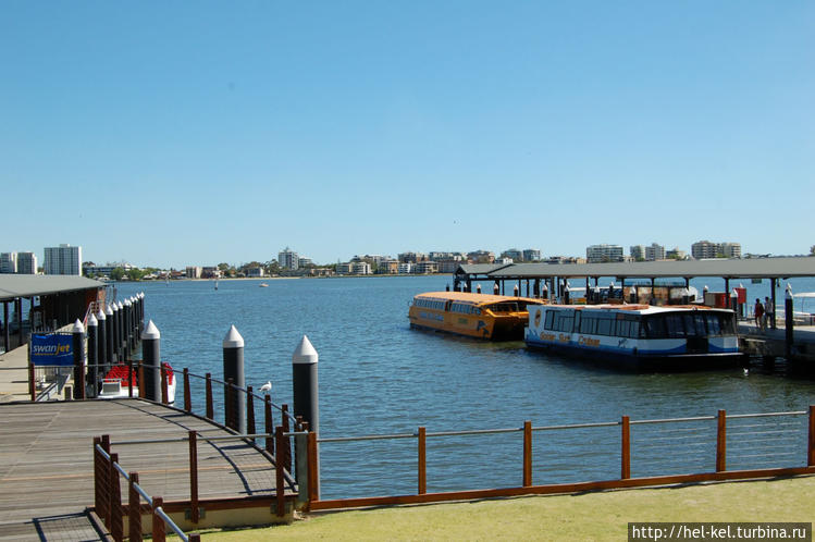 Экскурсия на Hip-Hop Bus начинается около пристани, от которой также можно совершить экскурсию на речном катере-трамвайчике, отправившись вниз по реке. А сев на борт катера-экспресса, можно добраться до острова Rottnest в Индийском океане рядом с побережьем, где находится что-то вроде национального парка и красивые пляжи.