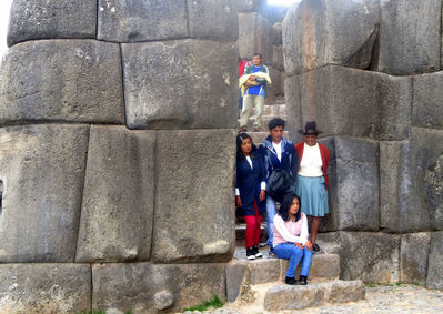 Огромные камни — остатки стен Саксайуамана. Саксайуман, расположенный на горе выше основных районов Куско, во времена Инков был одной из частей города. Несмотря на то, что испанцы разбирали здания и брали камни для строительства своих церквей, руины этого района и сегодня поражают воображение! Стены высотой 6-9 метров, состоят из идеально подогнанных друг к другу каменных блоков, прислонивший к которым, чувствуешь себя немного причастным к истории.