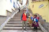 Впрочем, альпаки, правда взрослые, встречались нам потом практически везде, даже в самых неожиданных местах. Например, в самом центре города Куско. Альпаки — дружелюбные и доверчивые животные, у многих из них, я бы сказала, даже веселый характер. Как вот у этого красавца.