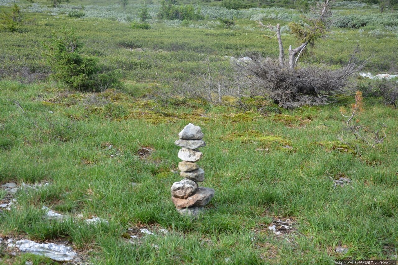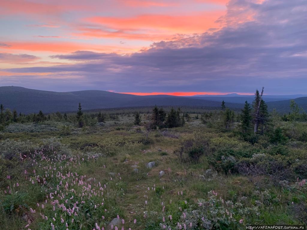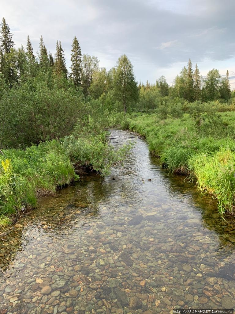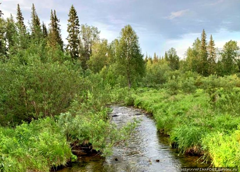 Часть нашей группы улетела. Наконец то, мы с рейнджером и минчанами пошли в тайгу к приюту, чтобы провести ночь в модулях и увидеть исток Печоры! Шли друг за другом по узкой тропе, в сопровождении назойливых оводов, комаров и мошки. На плато их было мало, потому что там дует постоянный ветер, а здесь в коридоре высоких деревьев кровожадным насекомым просто раздолье. Мы были к этому готовы — нашу одежду не прокусишь!