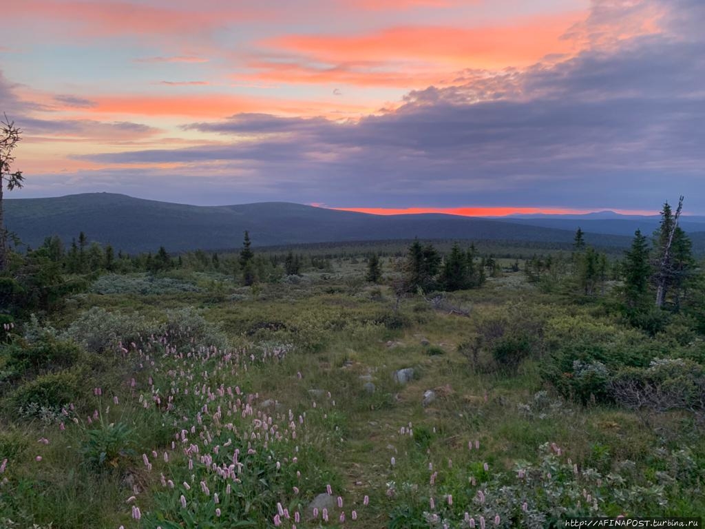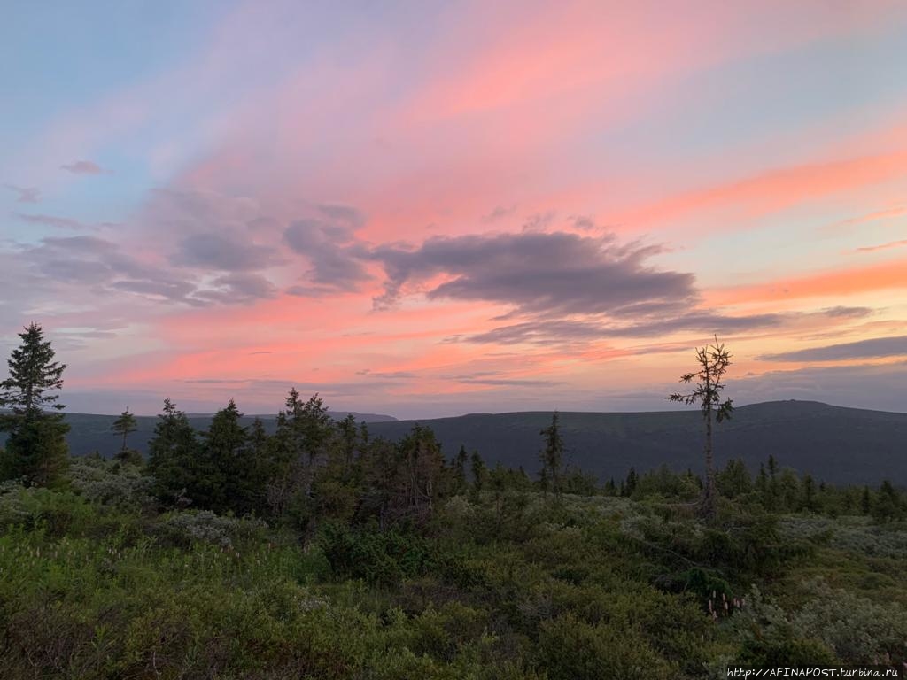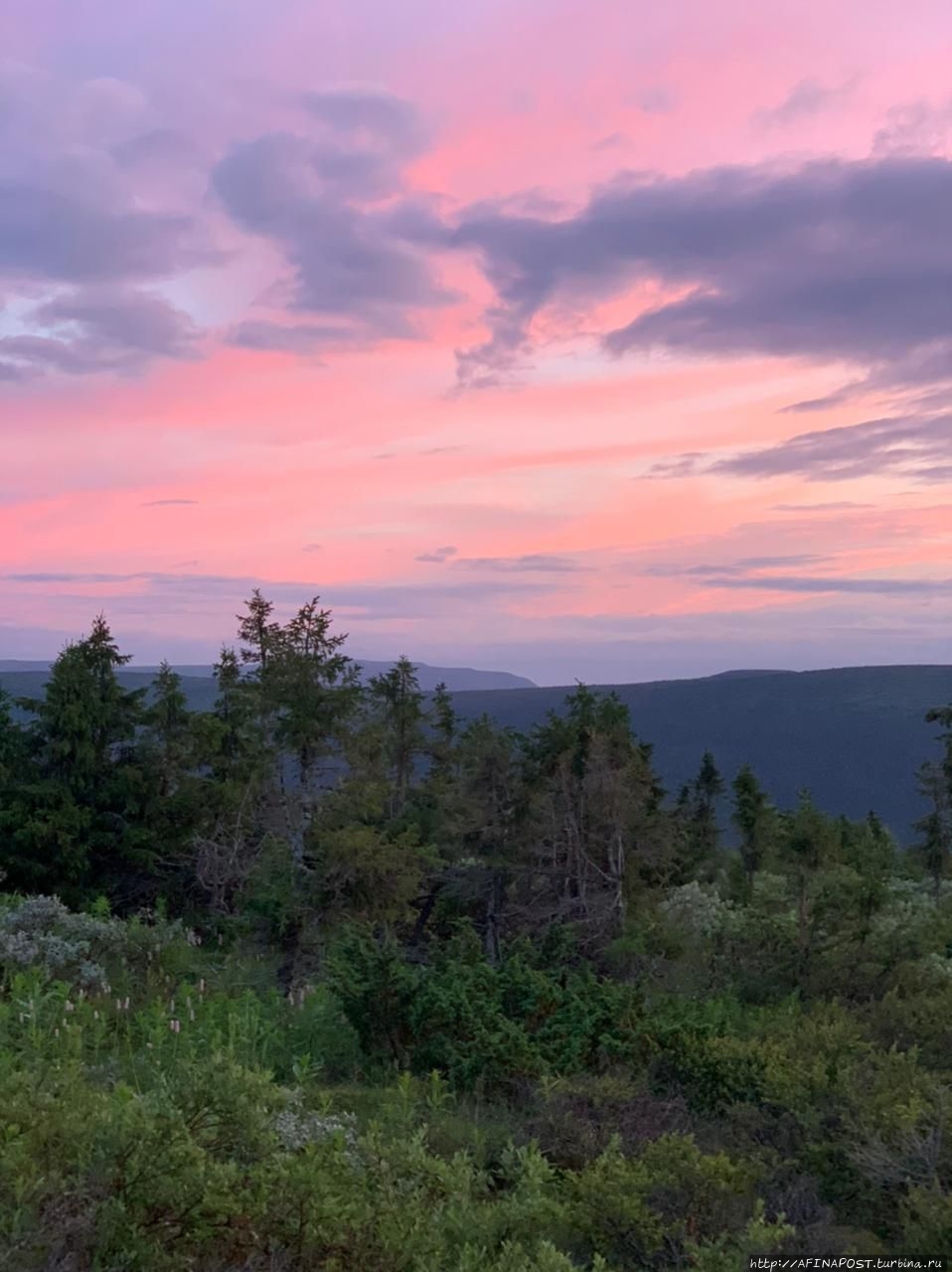 Вечером мы наблюдали красивый розовый закат над тайгой!