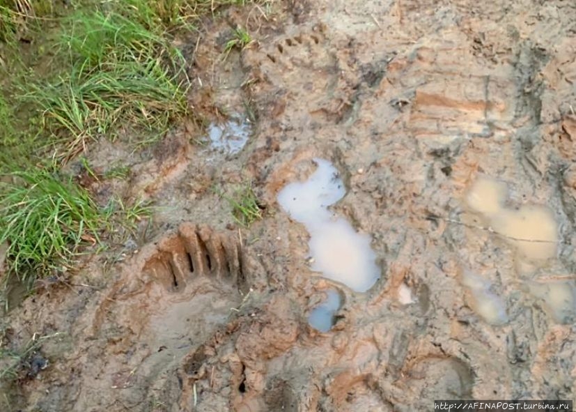 Вдруг на тропе впереди идущие увидели следы медведя!