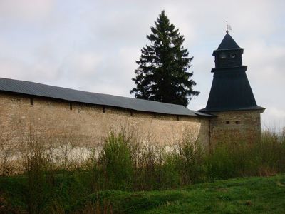 Башни монастыря. Чем не Кремль? Помнит войско Стефана Батория, например.