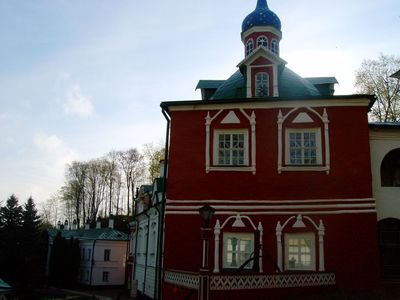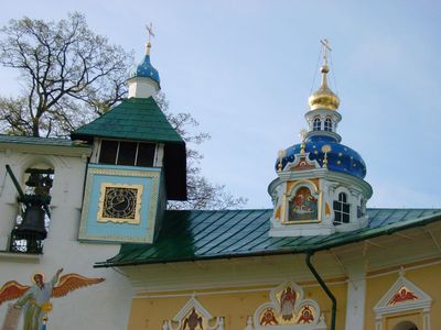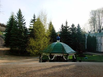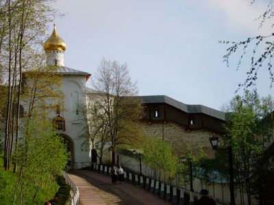 Фотография Псково-Печорского монастыря у меня была в учебнике истории 6-7 класса. Мне он всего казался каким-то особенно интересным, все-тки расположен у границы с Эстонией, где кончается Россия и начинается ЕС. Вот одним майским утром добрался до него и чуток погулял, спешил, чтобы успеть в Изборск.