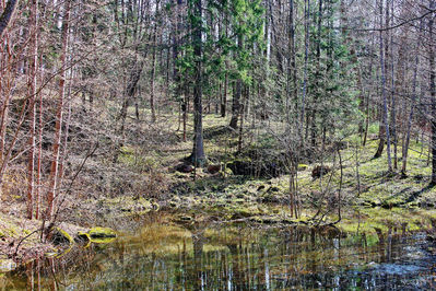 Для этого проследуем по тропинке, что начинается от южного фасада дворца Лейхтенбергских, вниз до каменного мостка, переброшенного через небольшую протоку.