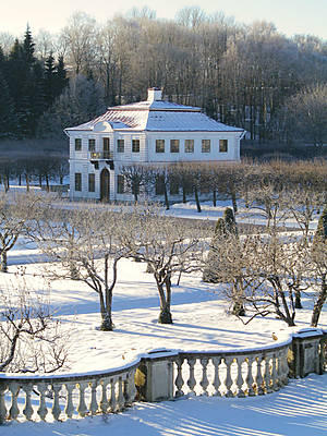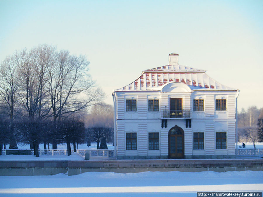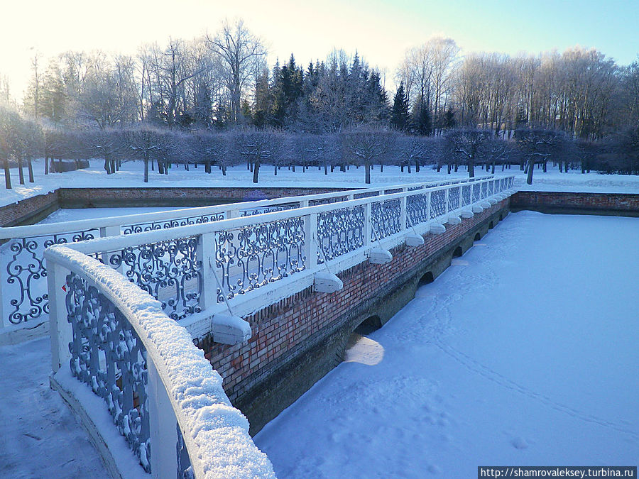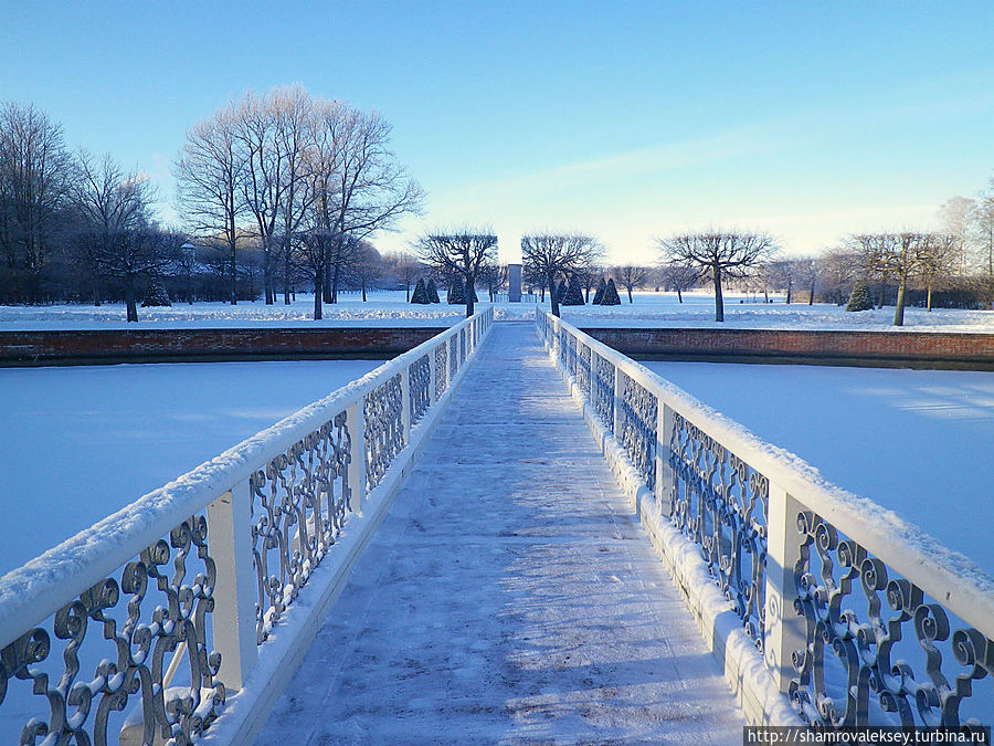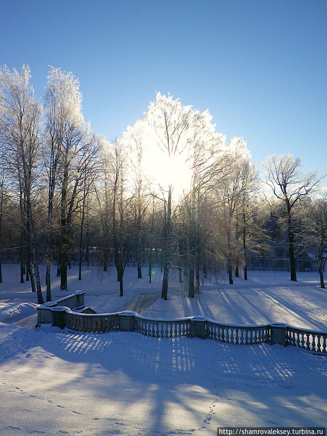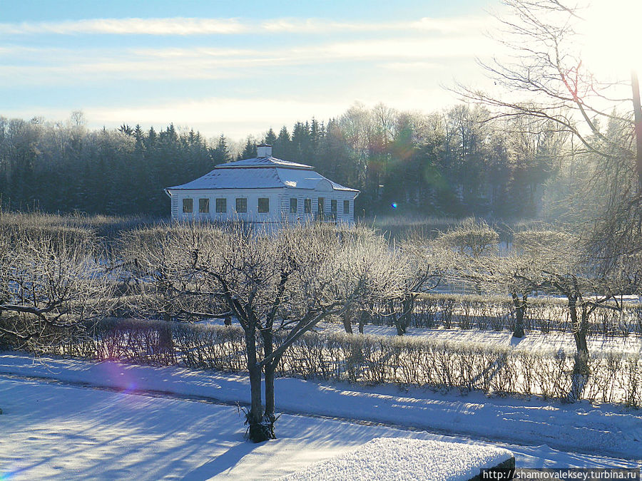 Эрмитаж.Вдали виднеется цель моей недолгой прогулки. Небольшой дворец отражается в водах большого пруда... Написал и усмехнулся, ведь на улице мороз и пруд скован льдом...
