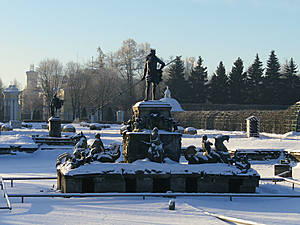 Ещё раз я прогулялся в тот день по Верхнему саду уже ближе к вечеру, когда я прощался с морозным зимним Петергофом.