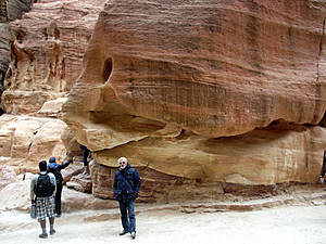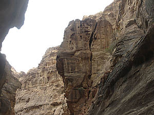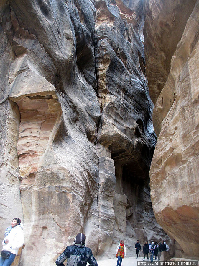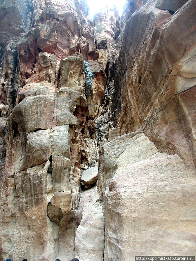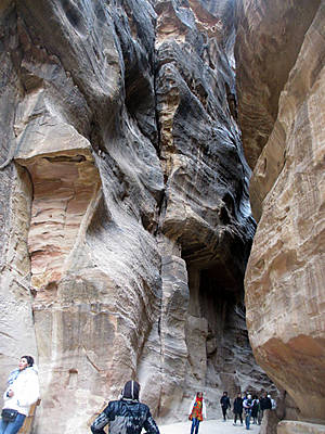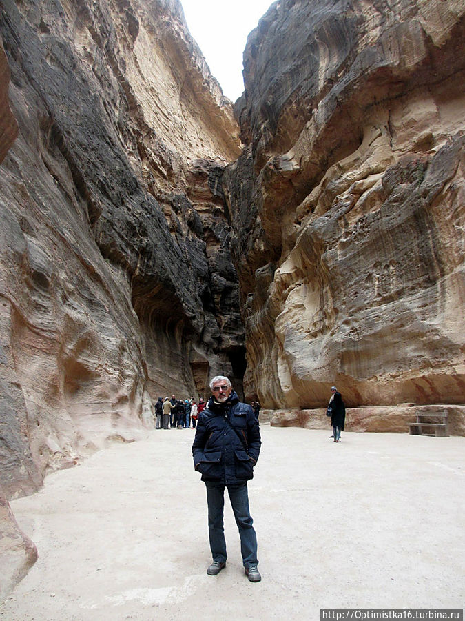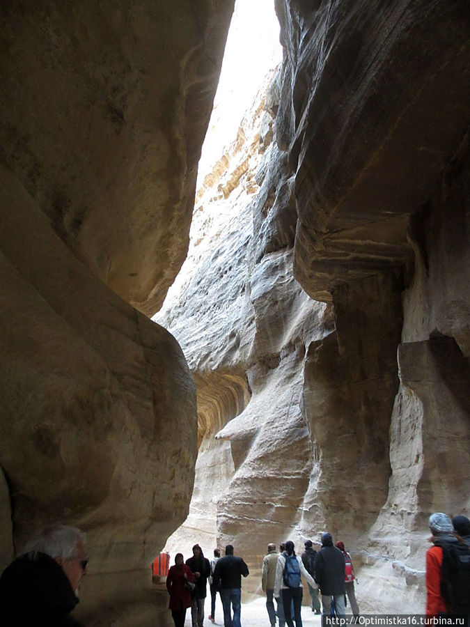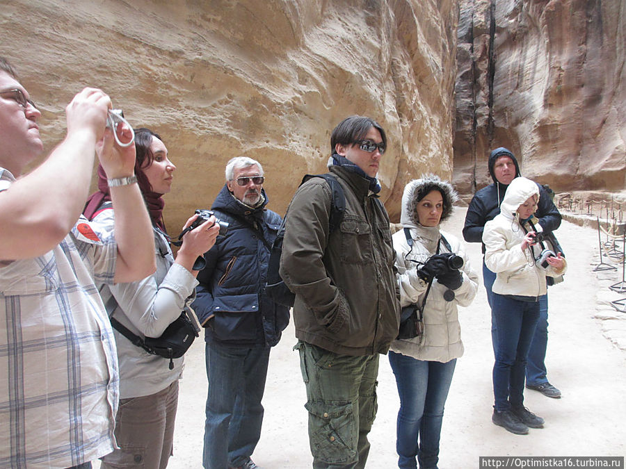 то вновь сужается.В ущелье холодно. Мы рады, что надели зимние куртки. Здесь они оказались совсем не лишними. (Даже трудно было себе предствавить, когда мы выходили из гостиницы в Эйлате, где стояла летняя жара 25-27 градусов, что надо будет так утепляться. Хорошо, что наша сопровождающая настояла, чтобы мы вернулись в номер за куртками.)