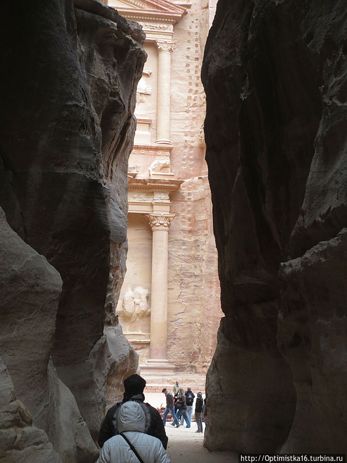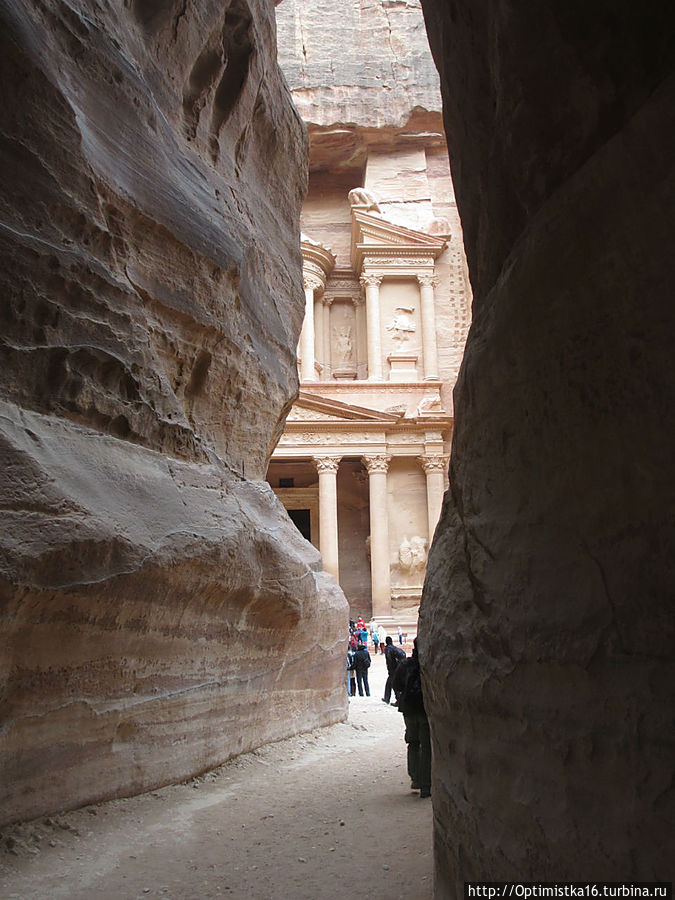 А мы продолжаем наш путь и вот наконец видим главную достопримечательность Петры. Сначала она открывается немного, ещё немного, и вот, наконец, предстаёт во всей красе.