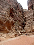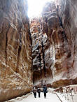 то вновь сужается.В ущелье холодно. Мы рады, что надели зимние куртки. Здесь они оказались совсем не лишними. (Даже трудно было себе предствавить, когда мы выходили из гостиницы в Эйлате, где стояла летняя жара 25-27 градусов, что надо будет так утепляться. Хорошо, что наша сопровождающая настояла, чтобы мы вернулись в номер за куртками.)