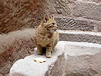 Гид обращает наше внимание на интересные детали. Вот скала, похожая на рыбу. Вот остатки скульптуры, изображающей человека и коня. А эту кошечку мы встретили на дороге. Неужели она здесь живёт? Одна и туристок дала ей немного сыра. Кошечка осталась довольна.