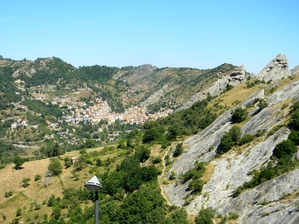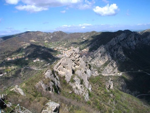 Машина круто поднимается от автострады, извиваясь змеёй и прижимаясь к крутому горному склону, теряясь среди мощных каменных утесов, составляющих региональный природный парк Луканские Долмиты. Название пришло от альпийского массива за удивительное пурпурное свечение гранитных скал в лучах закатного солнца.
