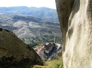 Наконец, мы въезжаем в Пьетрапертозу, приросшую к основанию гигантского гранитного монолита на высоте 1000 метров над уровнем моря. Древнее название деревни, которую по преданию основали еще пеласги, означает "прорезанная скала".