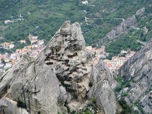 От аттракциона "Полет ангела" мы поднимаемся еще выше, к воротам норманнского замка XI века. Интересно, приходило ли кому ни будь в голову штурмовать эту крепость? Даже без вооружения и доспехов добраться досюда стоит усилий, но ведь оно того стоит! Со стен неприступной цитадели открывается волшебный пейзаж на черепичные крыши поселка, на выстроившуюся, как для парада, цепь каменных исполинов, на долину Базенто. Горизонты раздвигаются и открывают нашим глазам всю Луканию и северную Пулию до Адриатики на востоке и Ионики на юге.