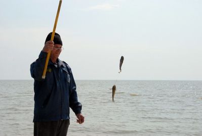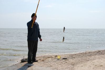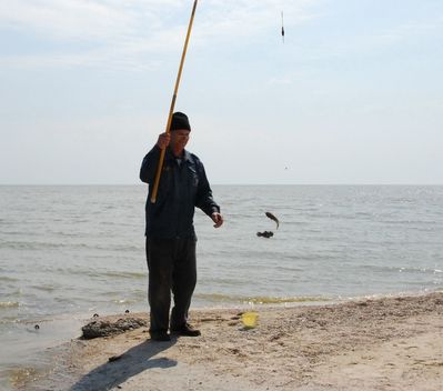 Иногда там можно встретить рыбаков, вполне удачливых. При мне, пока я щелкала кое-чем (фотиком, разумеется), этот человек одну за одной вытаскивал знаменитых бычков. Пока без томата.