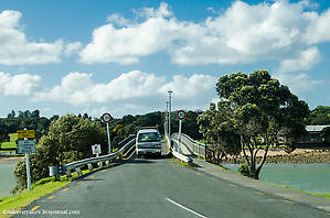 Место подписания находится на севере Пейхии на другом берегу реки Вайтанги, чтобы попасть туда нужно проехать по вот такому узкому мосту.