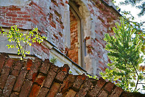 Дерево, растущее на крыше старой почти развалившейся церкви... Как оно там выросло? Ведь для этого на крыше должен сначала сформироваться слой плодородной земли, ветер должен принести семена и дерево уже какое-то время должно расти. Осмотревшись, мы увидели еще несколько деревьев, растущих по верхам перекрытий и арок. Если даже каждому из них не больше 20 лет, то сколько формировалась почва — лет 50-60?