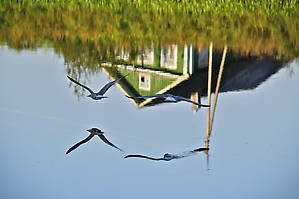 Глядя на отражения в воде на некоторое время попадаешь будто в зазеркалье и невольно задумываешься, если бы была жизнь в перевернутых и отраженных домах какая бы она была? и чем бы отличалась от привычного нам мира?
