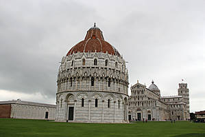 Пиза гордится своими архитектурными достопримечательностями. Первой среди этих великих творений является монументальный комплекс на площади, носящей название "Поля чудес". Весь комплекс располагается на просторном покрытом травой лугу. Здания Кафедрального Собора; колокольни, известной как "падающая башня"; Баптистерий и монументальных памятников кладбища Кампосанто составляют совокупность стилистической редкости.