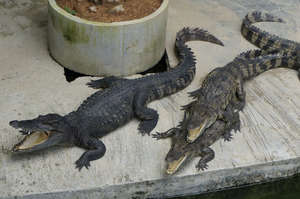 Ну, обо всем по порядку. Ферм, где разводят крокодилов на Пхукете, немало (впрочем, как и змеиных). И всех туристов, кого хлебом не корми – дай на экскурсию съездить, обязательно повезут на крокодилью ферму, а может и не на одну. Даже если вы не испытываете к этим хищникам теплых чувств, познакомиться с ними придется (так уж составлены программы). Мол, нравятся вам изделия из экзотических животных? Так полюбуйтесь шкурами сначала на их носителях, даже краткую лекцию о них прослушайте, потом при желании оцените будущую сумку (жакет, ремень и т.д.) на взгляд и на ощупь, взяв на руки крошку — монстрика с обмотанной (на всякий случай!) скотчем пастью. И заодно сфотографируйтесь (1 фото — 250 тайских бат) на память.