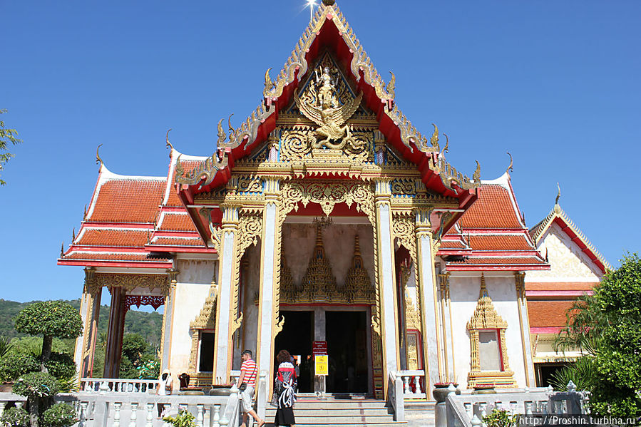 В храме Чалонг есть несколько построек каждая из которых имеет свое значение и выполняет определенную функцию – главный храм для молитв, ступа с прахом Будды (фрагмент лопатки), павильон со статуями монахов, крематорий и зал прощания, дом настоятеля и жилище монахов. Также на территории Ват Чалонга есть пруд с золотыми рыбками и множество магазинчиков с амулетами и талисманами.