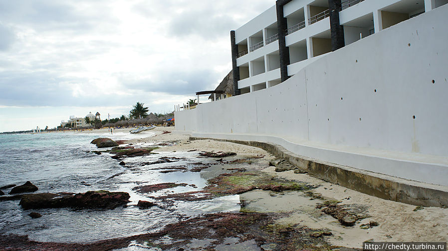 Во первых с точки зрения купания традиционные для американцев курорты Юкатана стали намного хуже. Очень многие пляжи просто смыло. Часть отелей стоит прямо у воды. Двадцать лет назад ширина пляжа у Омни была метров пятьдесят, сейчас три. Плюс, везде торчат выходы известняка о которые можно крепко расшибить ноги. Смыло роскошный риф который был практически в черте города, ну а волны там были всегда. Как результат, на этот раз в воду так не разу и не залезли.