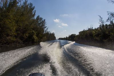 Добраться в деревню можно только на лодке — сначала по каналу и потом уже и по озеру.